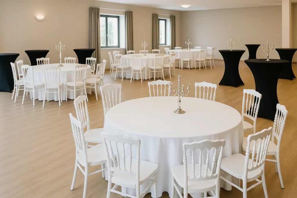 La location de chaise et de tables est aujourd’hui la solution la plus flexible pour aménager vos espaces sans contrainte d’achat, de stockage ou de transport.